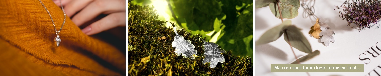 Ainulaadsed tammetõrudega hõbedast kõrvarõngad. Siim Antoni Lummuse ehtekollektsiooni Tammetunne loomiseks on inspiratsiooni ammutatud meie looduses kasvavatest tammedest – pühalikest, kindlatest ja kuninglikest puudest. Tammetunne on loodusliku ja naturaalse välimusega tootepere, mille iga ehe on veidike erinev, kordumatu ja unikaalne. Täpselt nii nagu meid ümbritsev maailm oma ebatäiuse ja eriilmelisusega. Igaüks, kes soetab toote värskeimast uuest kollektsioonist, saab lisaks ehtele kaasa ka signatuurkarbi ja autori poolt kirjutatud teemakohase luuletuse, mis kollektsiooni loomisele oma tõuke andis.